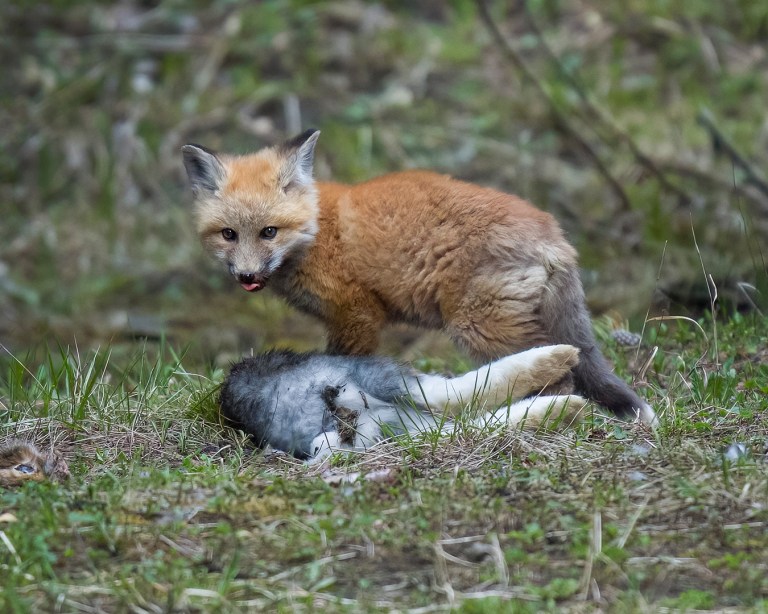 Fox Kit Gnawing on a Marmot