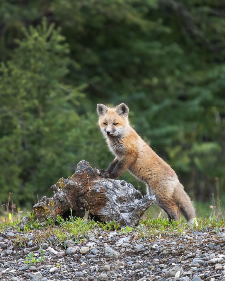 Fox Kit Leaning on a Log