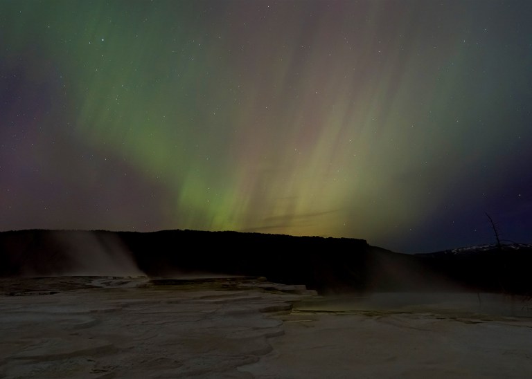 Northern Lights Over Mammoth Hot Springs Upper Terrace