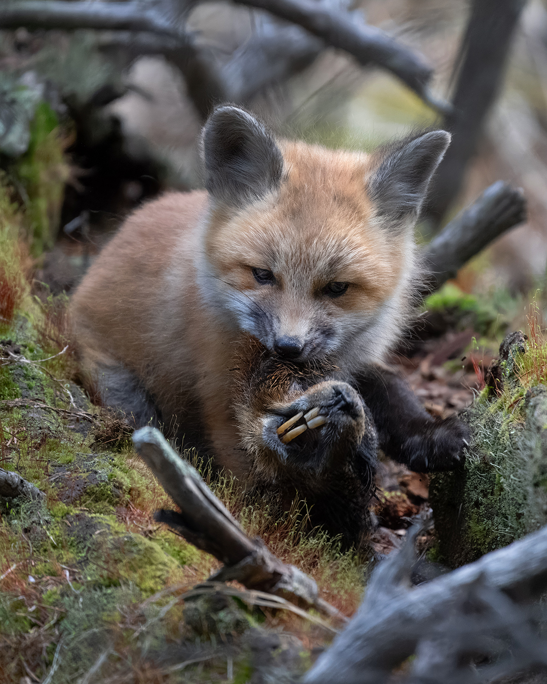 Fox Kit Gnawing on a Marmot