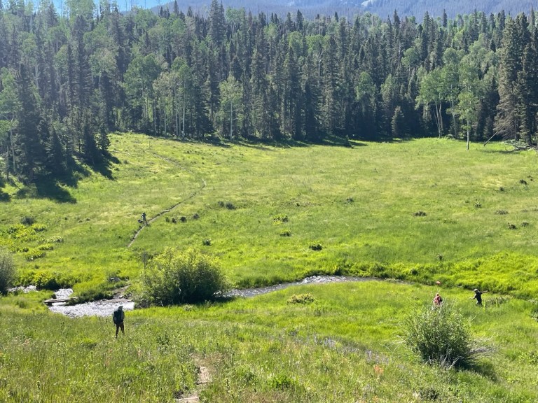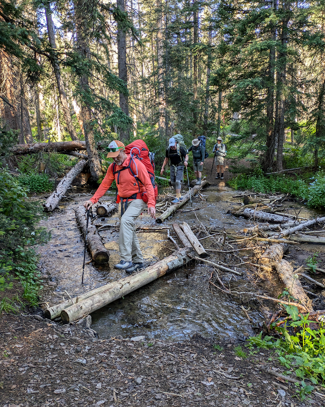 Crossing a Creek on Day 2 of the Sneffels Traverse