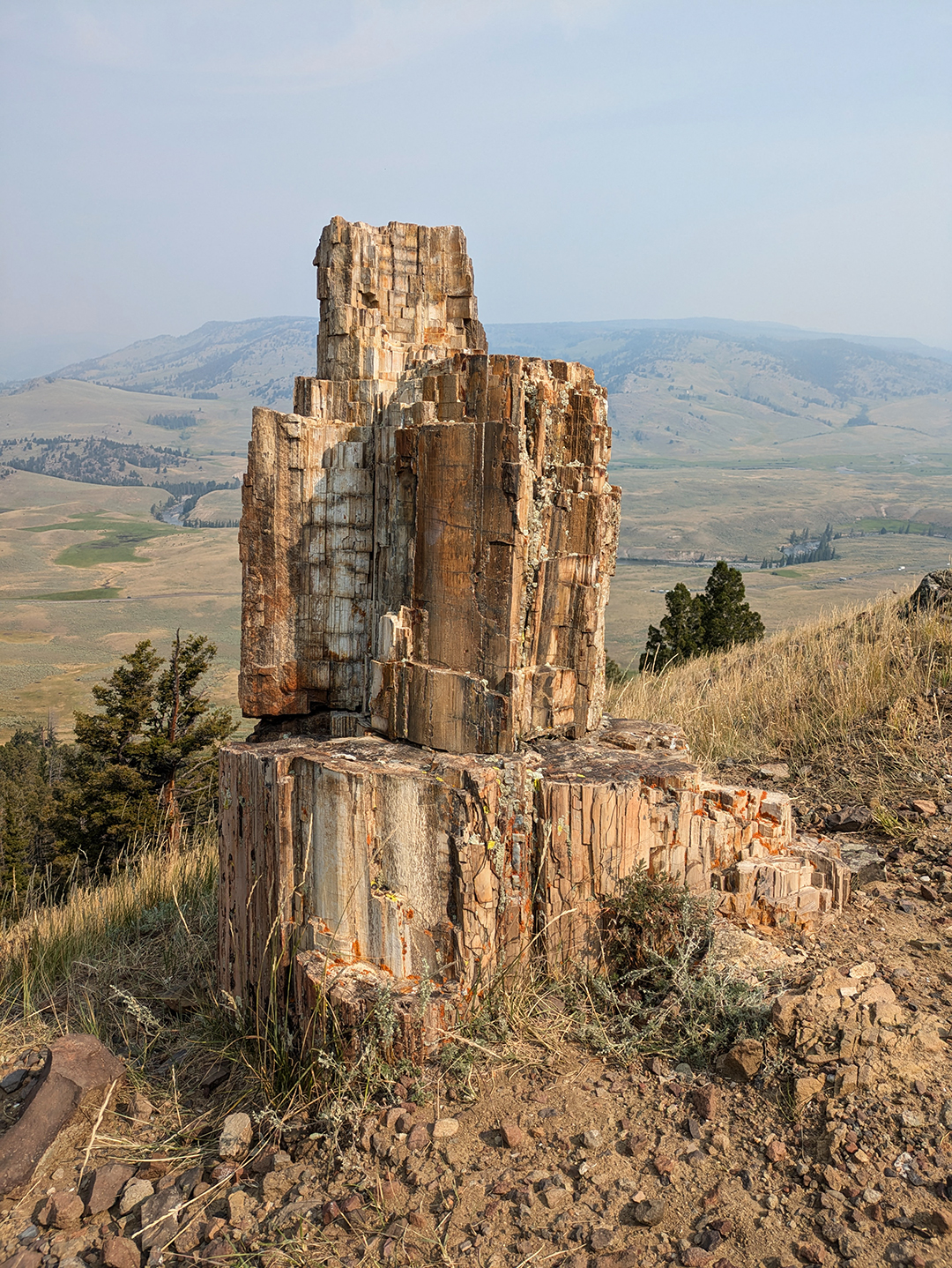 At the end of July I did another hike that was new to me, this time along the part of Specimen Ridge that runs from Junction Butte to the Crystal Creek pullout. It was fun to see all the petrified wood up there, and the slight haze caused by smoke from distant wildfires couldn’t hide the incredible views.