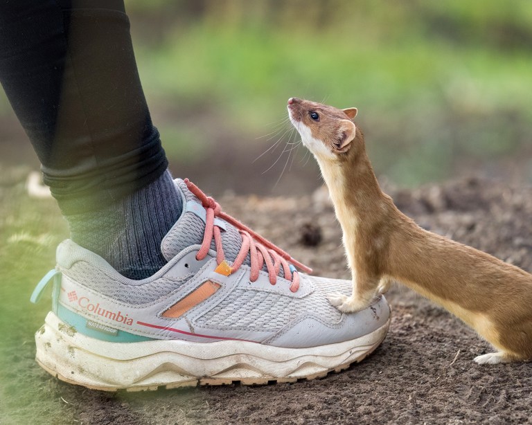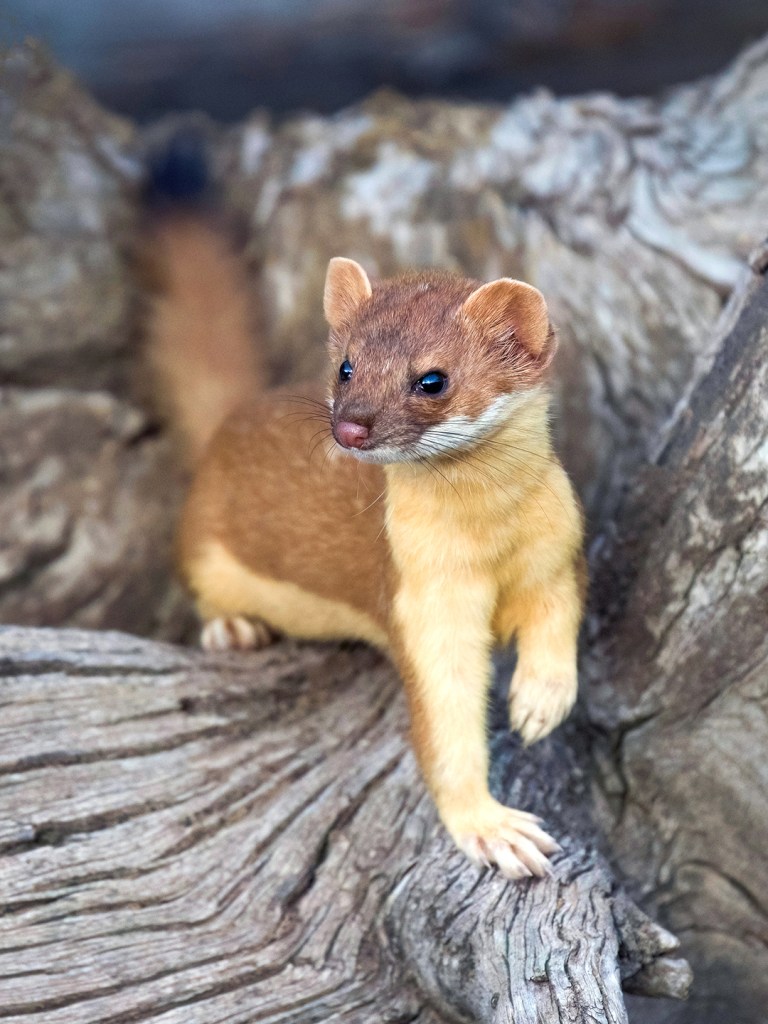 I returned the next morning, hoping the weasel might still be around. And sure enough, before too long the weasel popped out again. Tiny and impossibly quick, it would sometimes dart out towards me before bolting back down a burrow or under a log – the classic mustelid mix of curiosity and wariness.