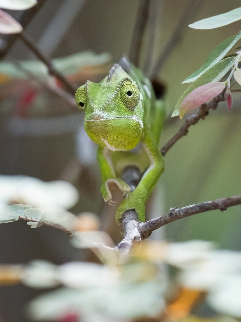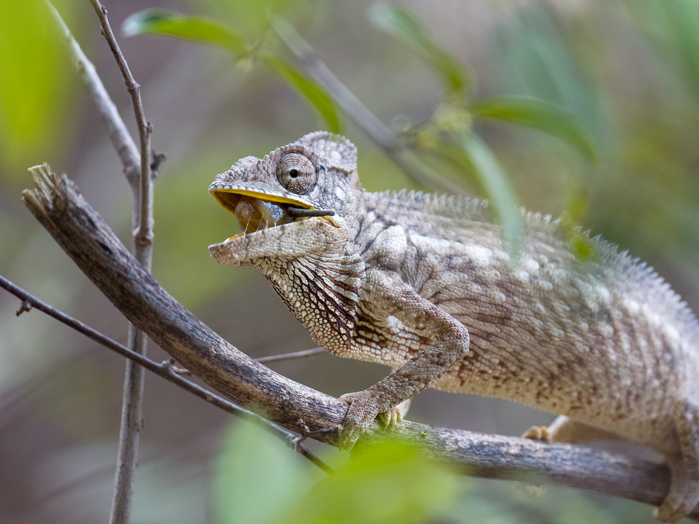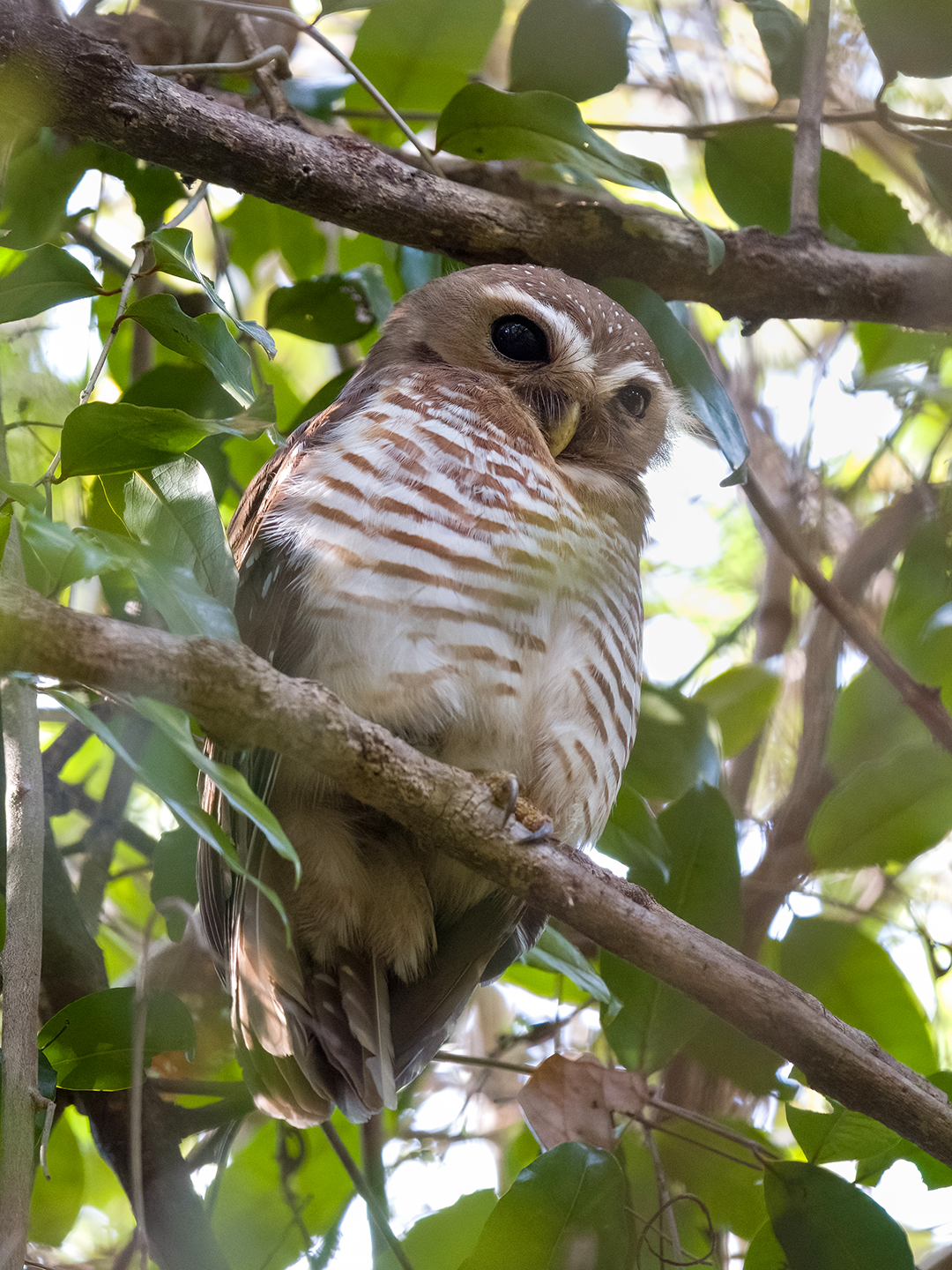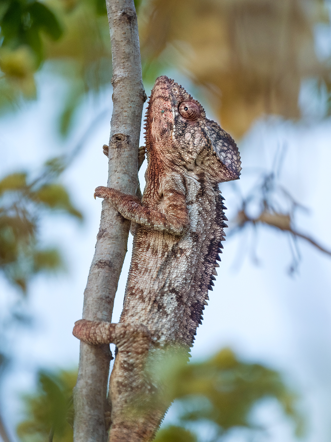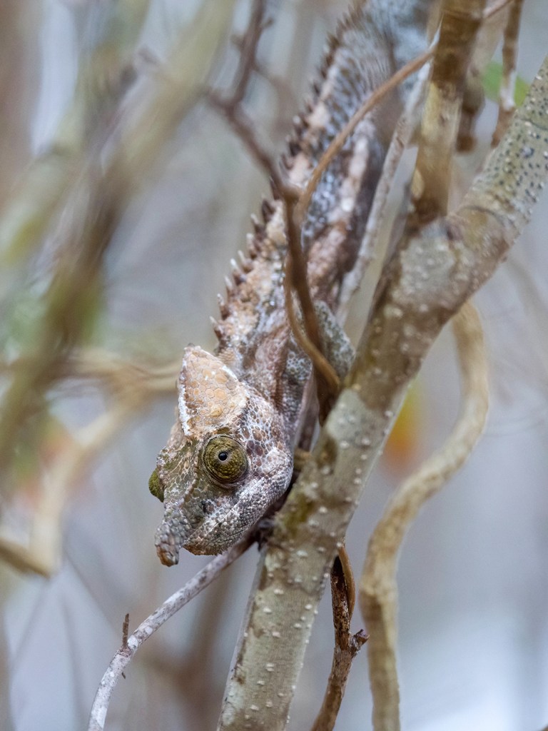 The sifakas were still around when we returned to the lunch area, but they were high up in the trees and some other wildlife demanded our attention – a white-browed owl (my first owl of the trip!) and a warty chameleon, both endemic.