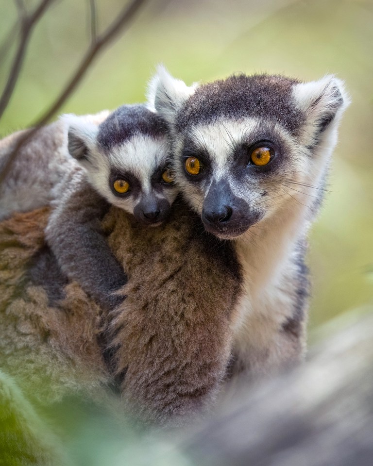 Ring-Tailed Lemur Mom Carrying Her Baby