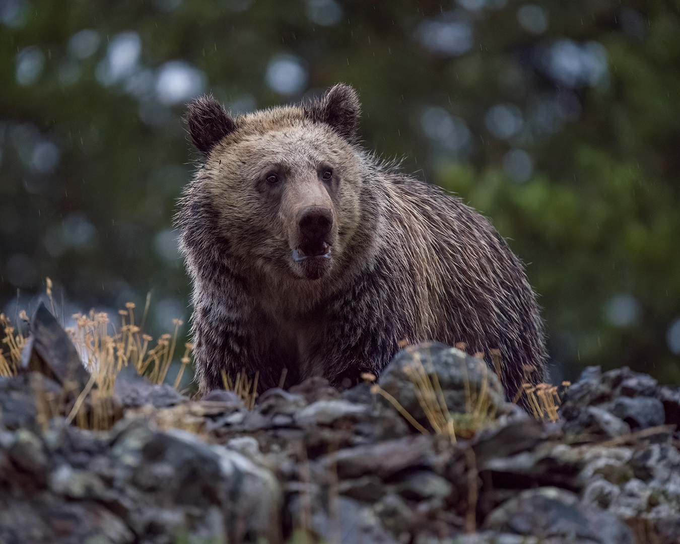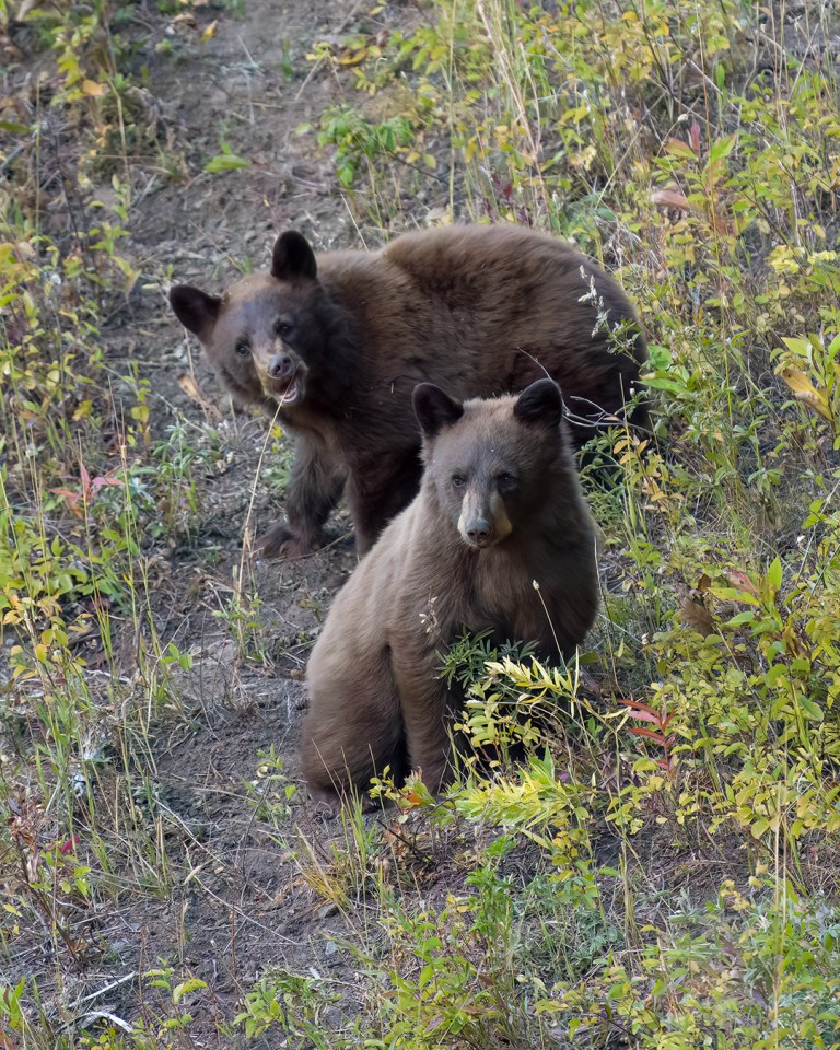 When I wasn’t in Bozeman or Grand Teton in September, I mostly stuck to my usual routine of morning hikes in Yellowstone. Wildlife activity tends to be a little slow at Trout Lake this time of year, but I did see quite a few black bears up there – once a mom with two cubs, and several times a small adult with a unique coat that sometimes appeared jet black and other times cinnamon, depending on the light. And, in what seems to be a regular pattern for this time of year, a grizzly made several appearances up on the cliffs by Ice Box Canyon, where it flipped over rocks and fed on something underneath.