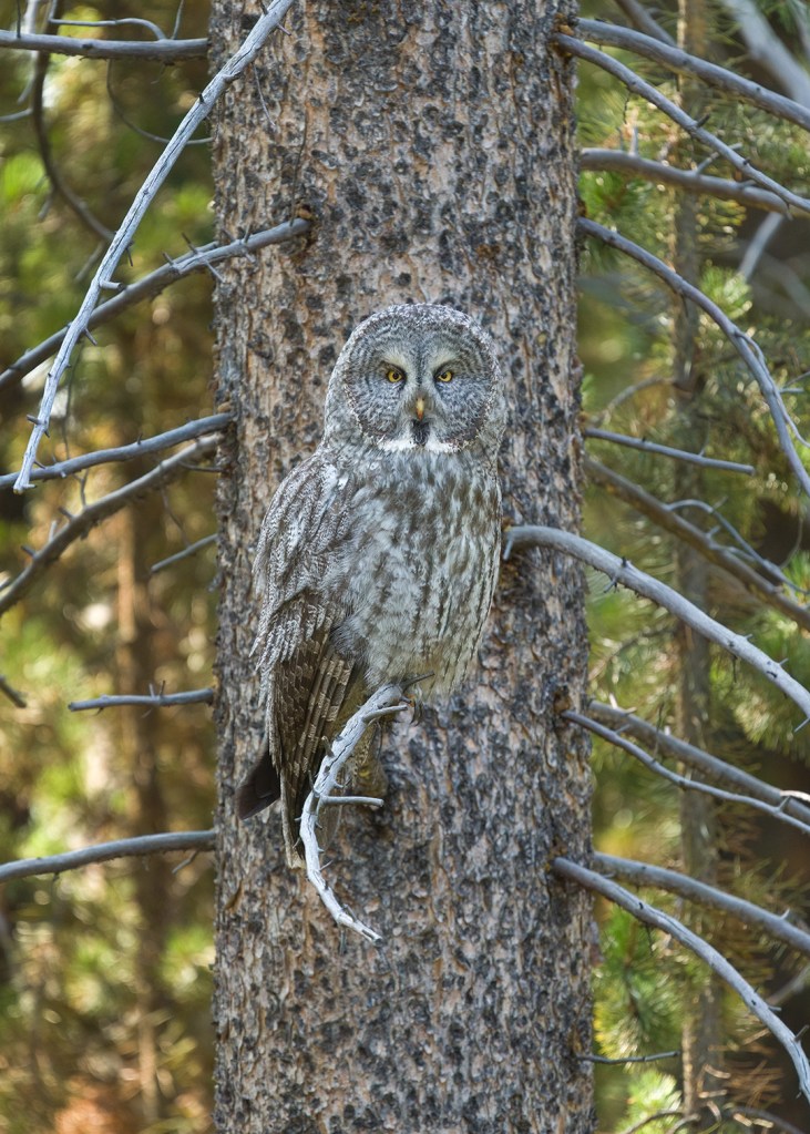 Thanks to help from my buddy Nick, I also had some good Great Gray Owl sightings. And on our way to look for owls one morning, Nick and I stumbled across the Mollie’s wolf pack hanging out with a grizzly.
