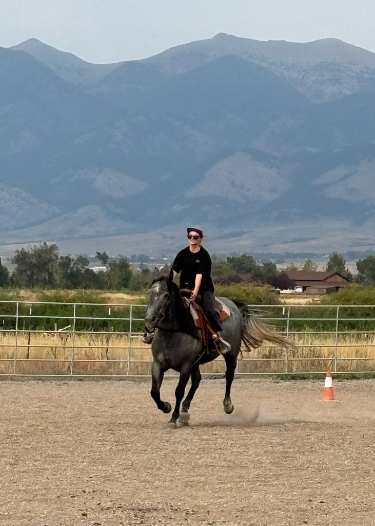 I knew that Marie would enjoy a lot of things about living in Bozeman – warmer weather, not having to drive hours to get to a grocery store, not having to worry about being attacked by a grizzly bear – but I expected that one of the biggest benefits would involve horse-riding opportunities. Marie has always loved horses, and lately some of her favorite experiences have been at a horse camp in Butte, Montana, where she’s been taking group lessons in riding and horsemanship over long weekends.