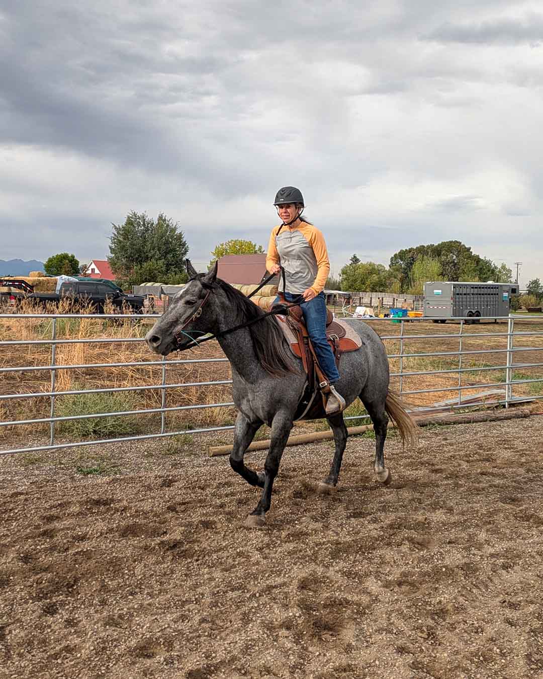 My niece Kate has a lot of riding experience, and she was almost as excited as Marie was about May. Kate’s place in Belgrade is close to May’s barn, and by the end of September she’d already ridden May multiple times. Kate’s proximity and interest in horses is a win for everyone, given that having an extra rider and caregiver will be a huge help for Marie.