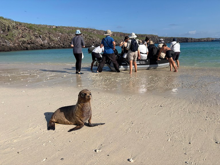 That afternoon we headed back to Genovesa for some time at Darwin Bay, where baby sea lions nursed on an idyllic beach and tropicbirds soared overhead.