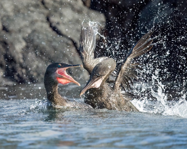 That night we motored over to Isabela, the big island just west of Santa Cruz, and headed out early the next morning to walk around Tintoreras, an area of lava rocks with a shallow channel that attracts reef sharks and sea turtles. That afternoon we visited Puerto Villamil, Isabela’s biggest town, and walked around the Tortoise Breeding Center before heavy rain sent most of us back to the boat. I’d known from the itinerary that these first two days of the tour would be relatively slow, for me at least, given that we were still in population centers. But things were about to ramp up as we left the towns behind.