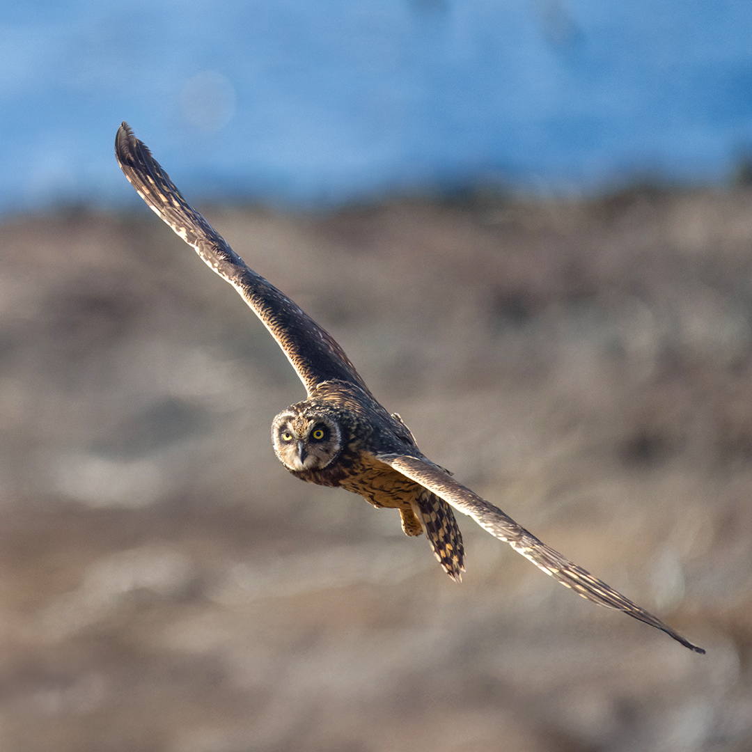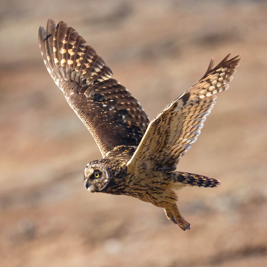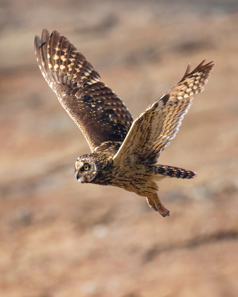 The owl briefly interacted with another owl behind a rock – its mate, according to Carmen – and then landed again, closer this time. I repositioned, waited, and couldn’t believe my luck when the owl treated us to a second – even better! – fly by.