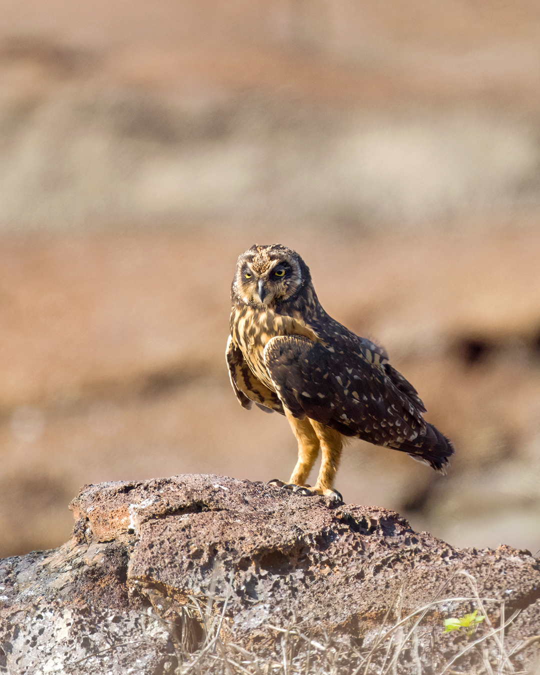 The next morning we arrived at Genovesa, a birder’s paradise. Notably for me, the visitor site at El Barranco (aka Prince Philip’s Steps) is the best place to spot the Galapagos short-eared owl. I’d seen owls there on previous visits, but I’d never managed to get a photo of one flying. And, as I told Carmen and anyone else who’d listen, getting an in-flight shot of a short-eared owl was at the very top of my photographic wish list for this trip.