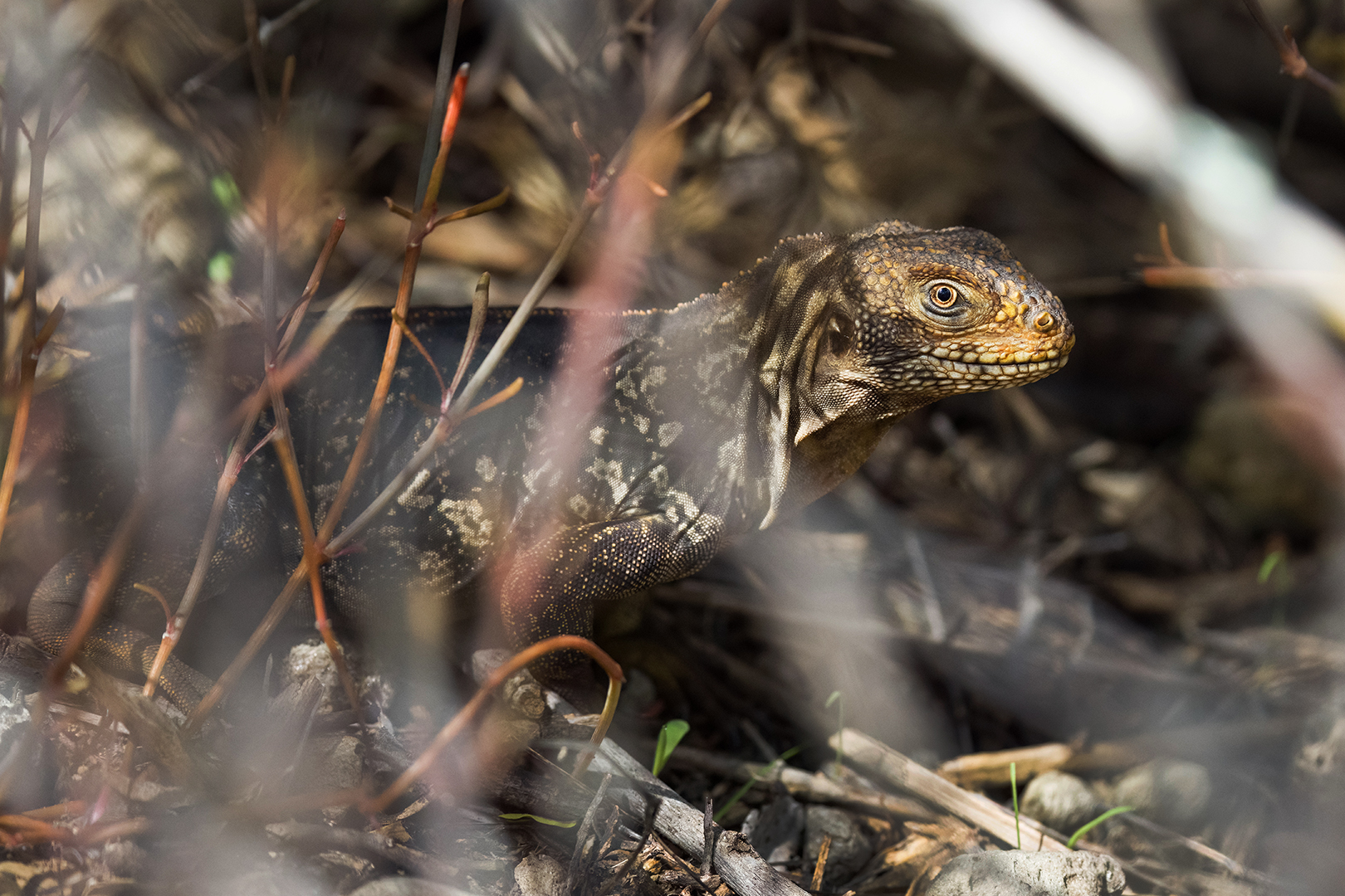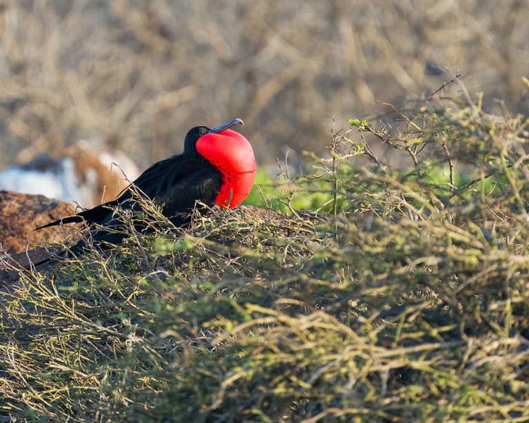 All too soon it was time to leave, and as we reluctantly walked away Wolfgang and I saw an owl swoop over the trail behind us and land under a bush. The owl had something in its talons but vanished into the vegetation before we could get a better look. Later I saw in the few photos I managed to take that the owl was carrying a storm petrel (its primary prey on Genovesa) as it flew by, so I’m guessing it was ducking into the bush to enjoy its meal in private.