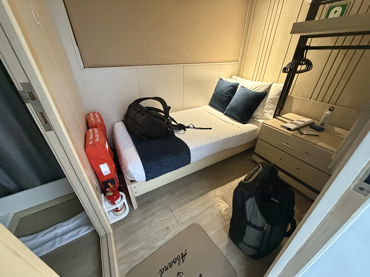 After Rancho Primicias we made a quick stop at a lava tunnel and then boarded our boat for the first time. I was lucky enough to have my own little upper-deck cabin, a real luxury considering that single travelers usually have to share a room.
