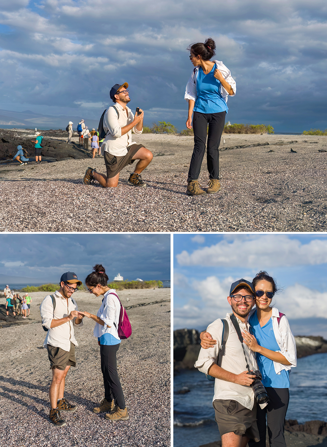 One afternoon Nico, the Chilean who was traveling with his Ecuadorian girlfriend Majo, pulled me aside to ask a favor. “I’m going to propose to Majo on this trip,” he confided, “and I need photographer.” I told him I’d be honored, of course. Nico decided to pop the question at Espinosa Point on Fernandina (one of the absolute coolest visitor sites), and I did my best to capture the moment as he dropped down on one knee. She said yes.